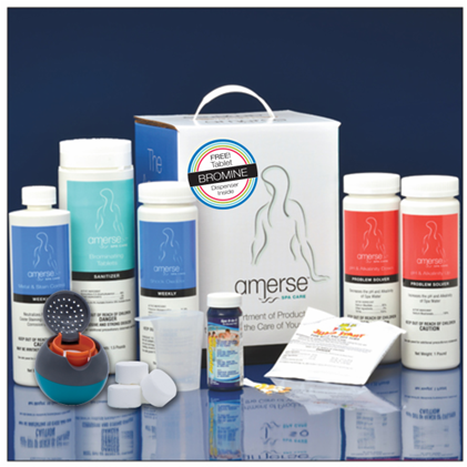 The best value in kits! Includes: Bromine Tablets, Go Brom, Amerse Shock Oxidizer, Amerse Metal & Stain Control, Test Strips, Amerse pH & Alkalinity Up, Amerse pH & Alkalinity Down, Measuring Cup, Amerse Spa Side Reference Card, the Amerse Spa Care Guide and our NEW mini bromine tablet dispenser.