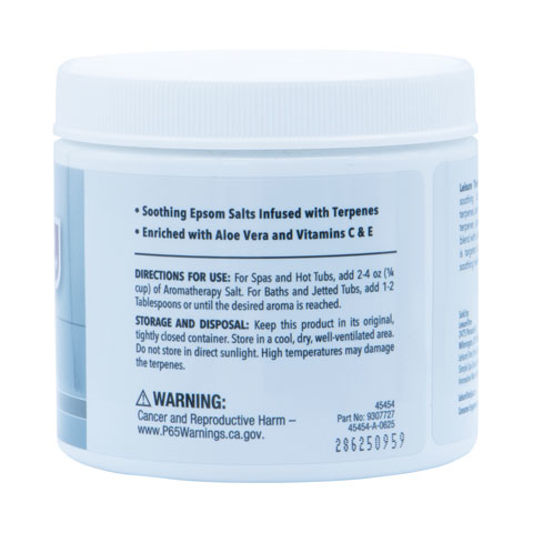Aromatherapy epsom salt crystals, infused with aloe, vitamins C & E and natural Terpenes.