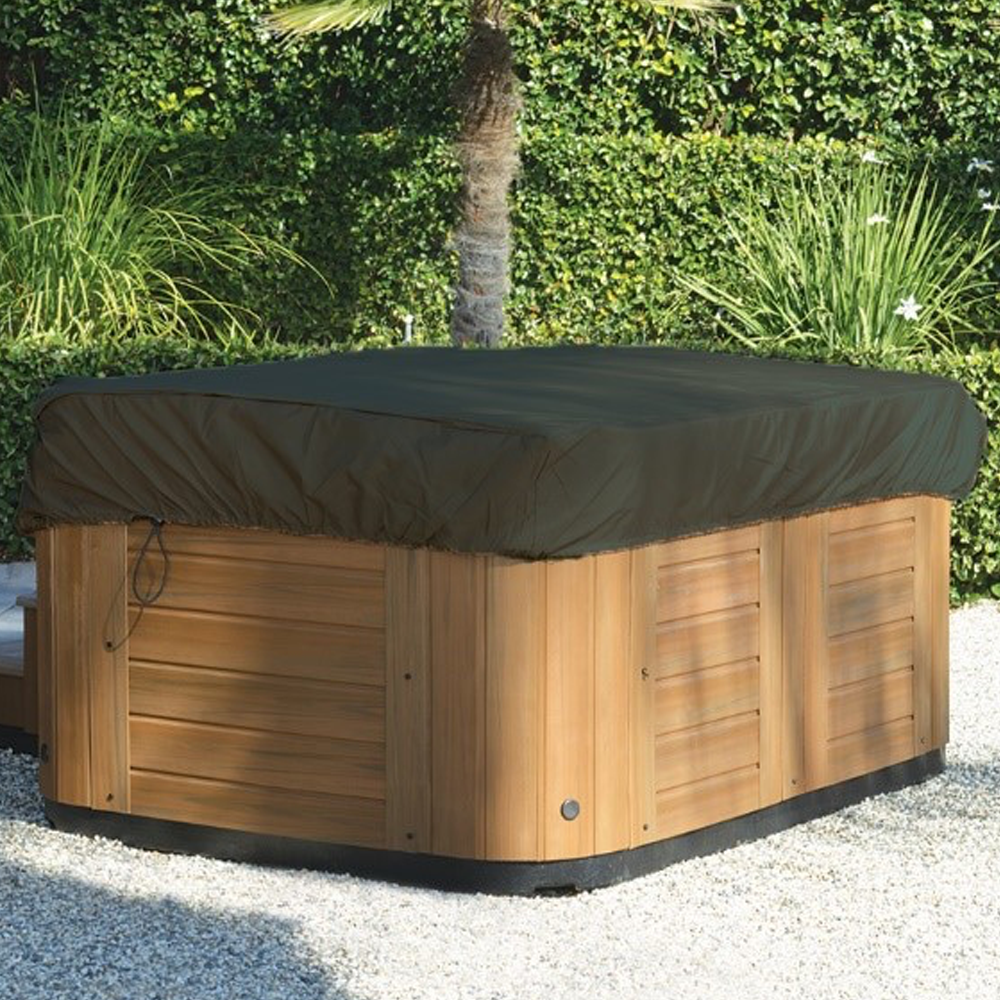 Premium Spa Cover CapThe Cover Cap is available in two sizes (89"x89"x12" and 96"x96"x12") to complement many sizes of portable spas.A convenient locking drawstring on two sides of the cap allows you to cinch the cover to the exact spa dimension and easily allows for curved or cut corners and odd shaped spas. Fabric is mildew resistant and waterproof.