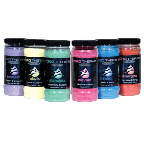 The HydroTherapies RX Metal Floor Display features dynamic side and top graphic headers. Sturdy metal design with rolling and locking casters. Stands 5.5ft tall and 2ft wide. The display rack holds 6 cases of 19oz Sport RX Crystals, 1 case of assorted Sport Rx Liquids and comes with convenient side holders for 5oz sample jars and SpaBombs.