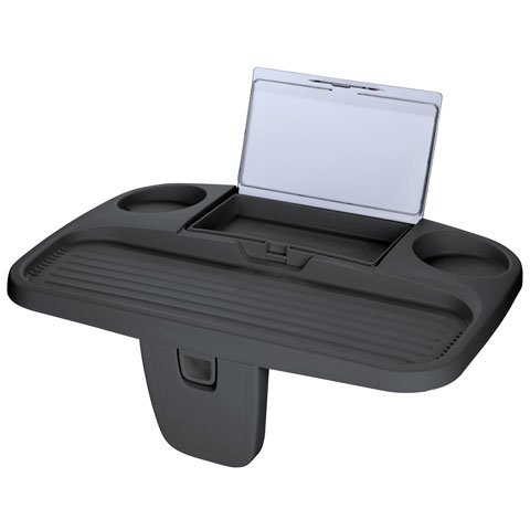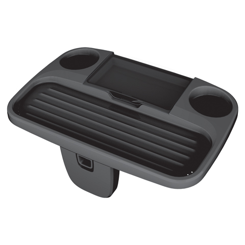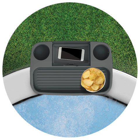 Secure and versatile tray table with two cup holders, anti-slip (grooved) shelf and special waterproof section to stow items liek cell phones. Open up the lid and use for a book or tablet stand. Fits most spa and hot tub walls.