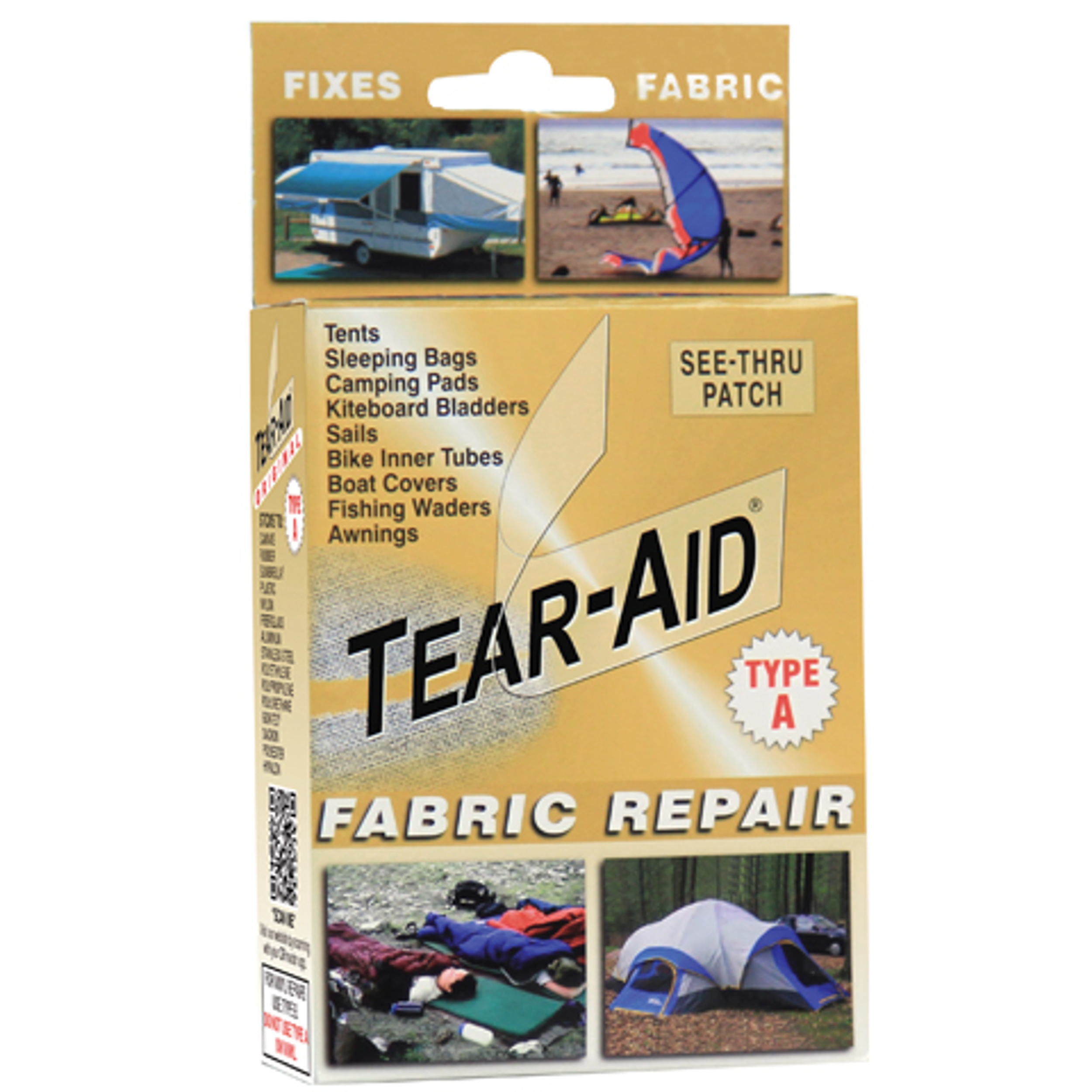 Tear-Aid repairs holes and tears instantly! Tear-Aid has a unique composition that stretches and recovers absorbing the force that causes ordinary products to lift. Holds air and water under pressure even when stretched. The UV resistant inhibits yellowing and it conforms to irregular surfaces. Cuts easily to any size with scissors. Won't turn gummy.